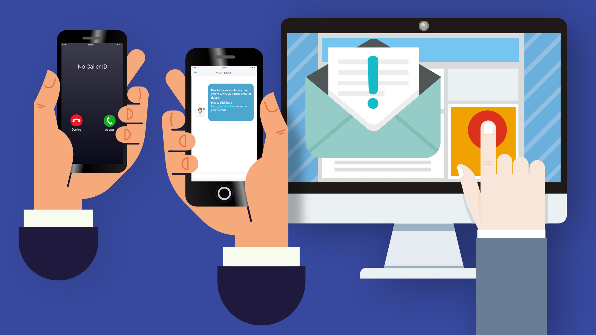 Фішинг (за допомогою листів), смішинг (СМС) та вішинг (телефоном) — найпоширеніші атаки на клієнтів банків. Це прийоми так званої соцінженерії.