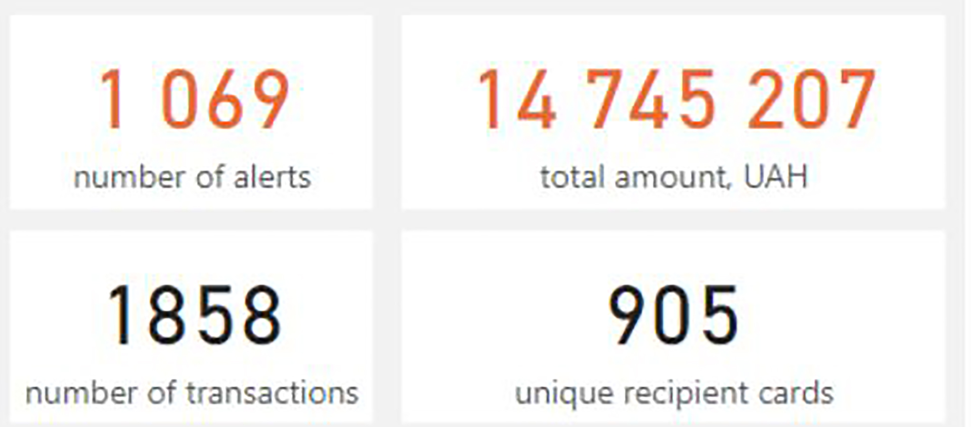 - 15 банками відправлено 1 069 алертів на загальну суму 14 млн. 745 тис. грн