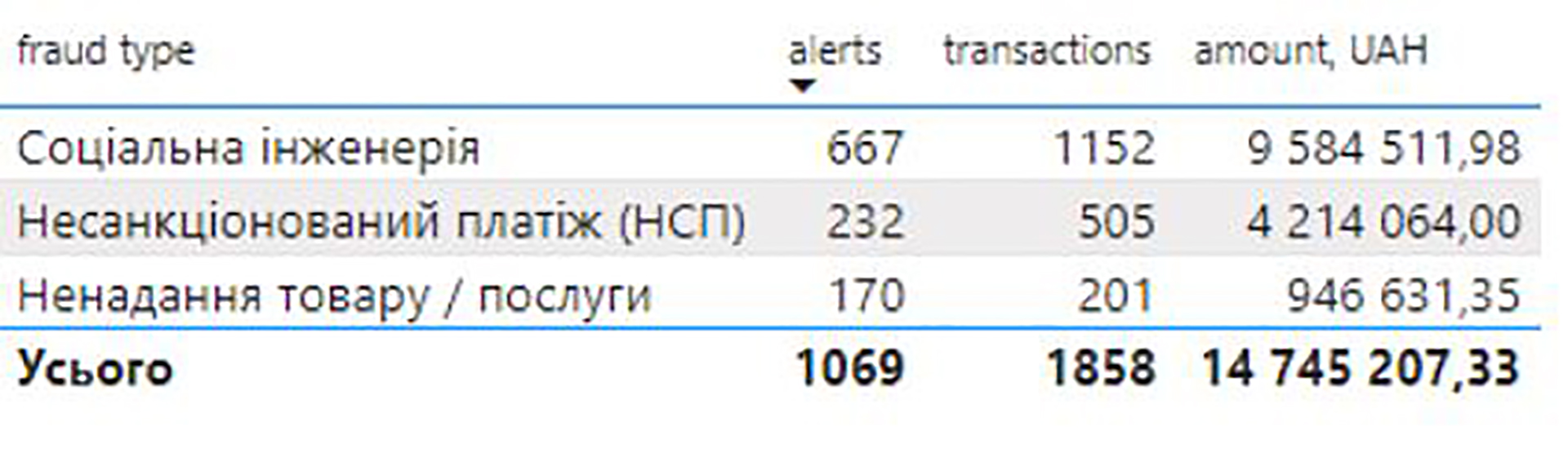 - більше ніж 1 млн. грн. потенційних втрат від шахрайства попереджено