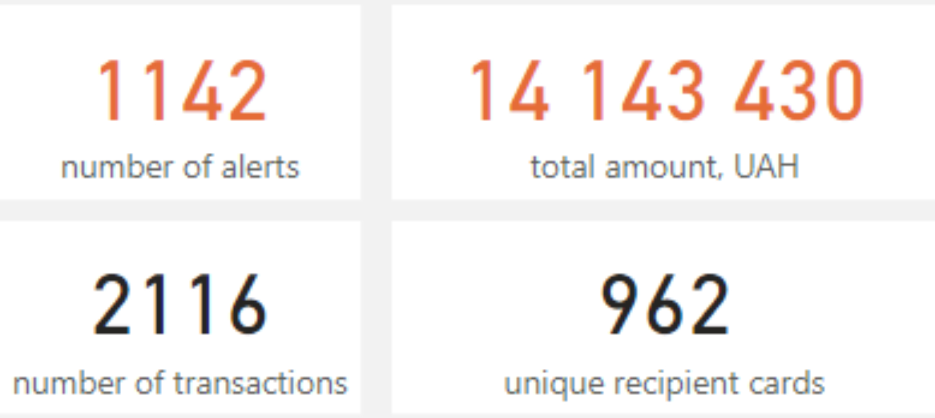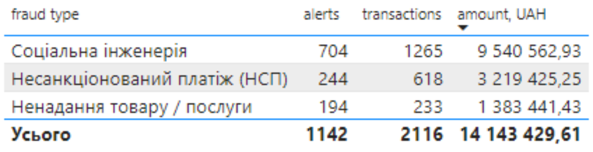 - 18 організаціями відправлено 1142 алертів на загальну суму 14,1 млн. грн.
