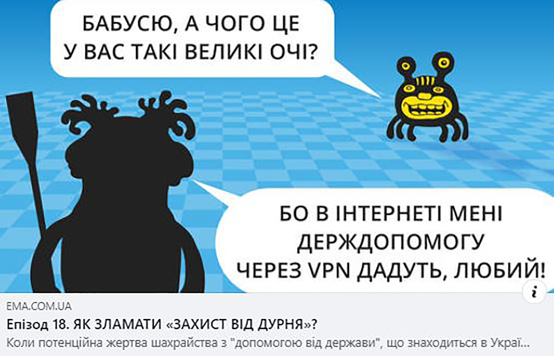 6. У рамках підтримки інформаційної кампанії #ШахрайГудбай вийшов Епізод 18. Захист від дурня онлайн-коміксу #ЖабаГадюку, який пояснює громадянам діяльність команди реагування на кіберінциденти в банківській системі України CSIRT-NBU, НКЦК РНБО, вітчизняних Інтернет та мобільних провайдерів, що фільтрують фішингові домени на рівні провайдерів, захищаючи українських громадян від шахрайських сайтів, та чому не потрібно намагатися зайти на ці сайти за допомогою VPN. Ознайомитися з усіма епізодами можна на офіційній сторінці коміксу, а завантажити усі наявні на сьогодні епізоди – за посиланням.